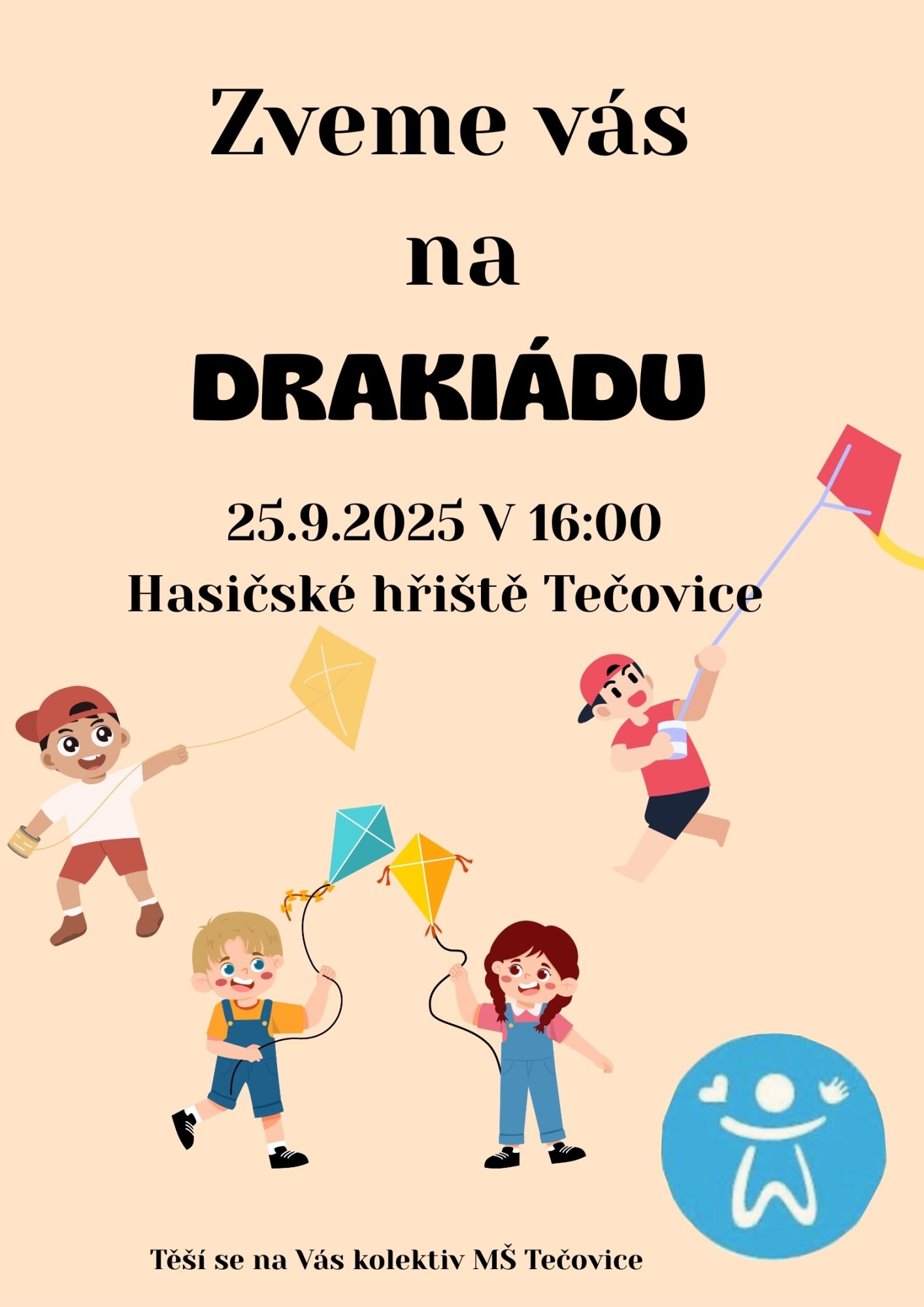 Vážení rodiče,srdečně Vás zveme na Drakiádu, která se uskuteční ve čtvrtek dne 25. 9. 2025. Těšíme se na společné setkání!