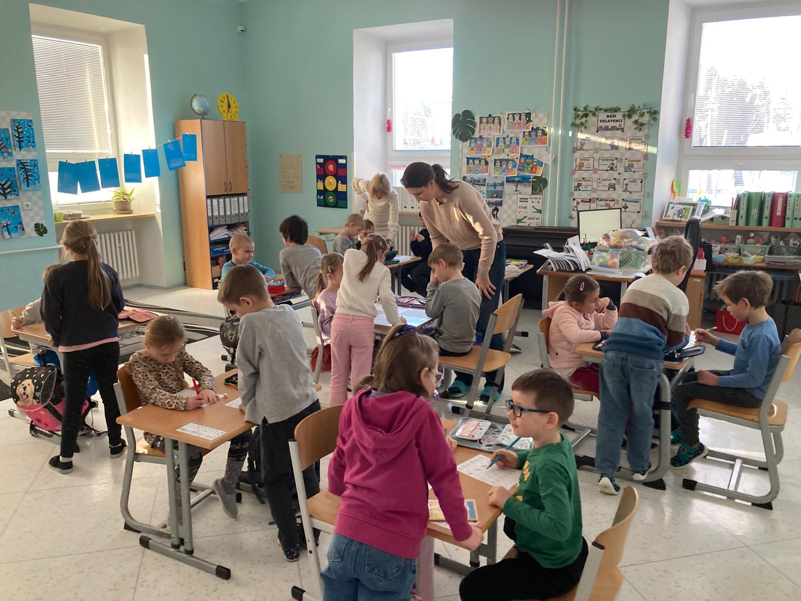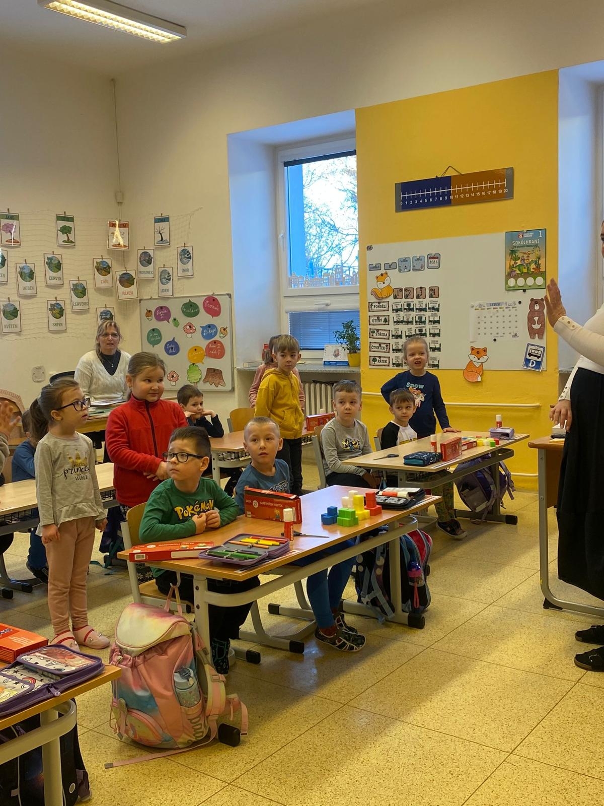 Dnes zavítali do 1. tříd na další návštěvu předškoláci z naší mateřské školy. Měli možnost se blíže seznámit se školním prostředím i s tím, co je od září čeká. Prvňáčci jim ukázali, jak probíhá vyučování, a společně si vyzkoušeli plnění jednoduchých úkolů v příjemné a přátelské atmosféře.