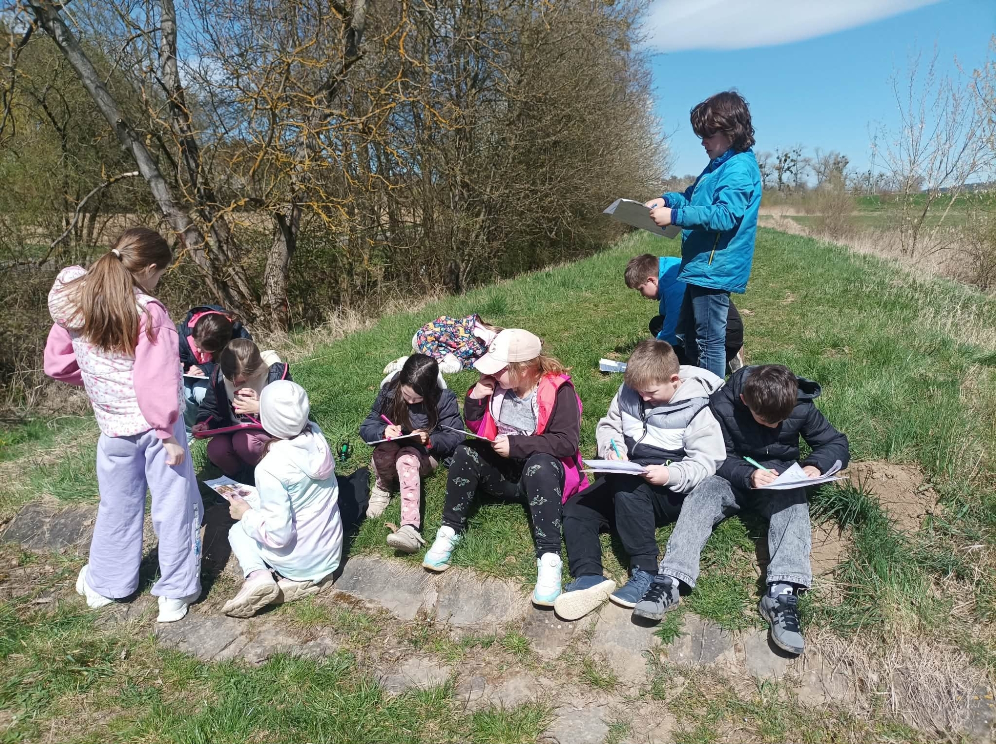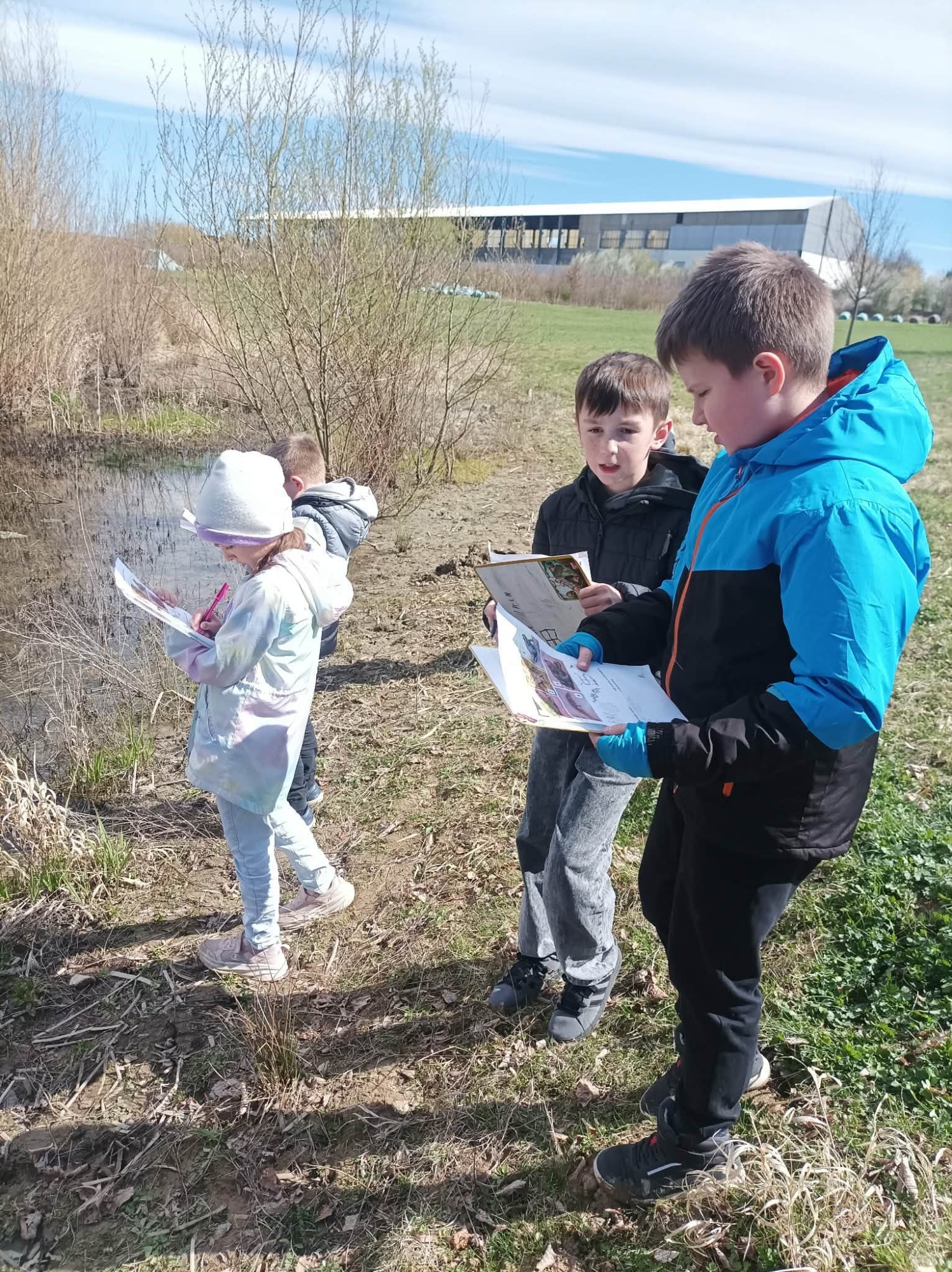 Dopoledne venku bylo plné objevování, pozorování, sdílení nápadů a naslouchání typickému žabímu kvákání. Třeťáci pracovali jako skuteční badatelé, kladli otázky, hledali odpovědi a učili se přímo v terénu. Měli velké štěstí. Objevili i snůšky vajíček, což byl pro všechny velký zážitek.