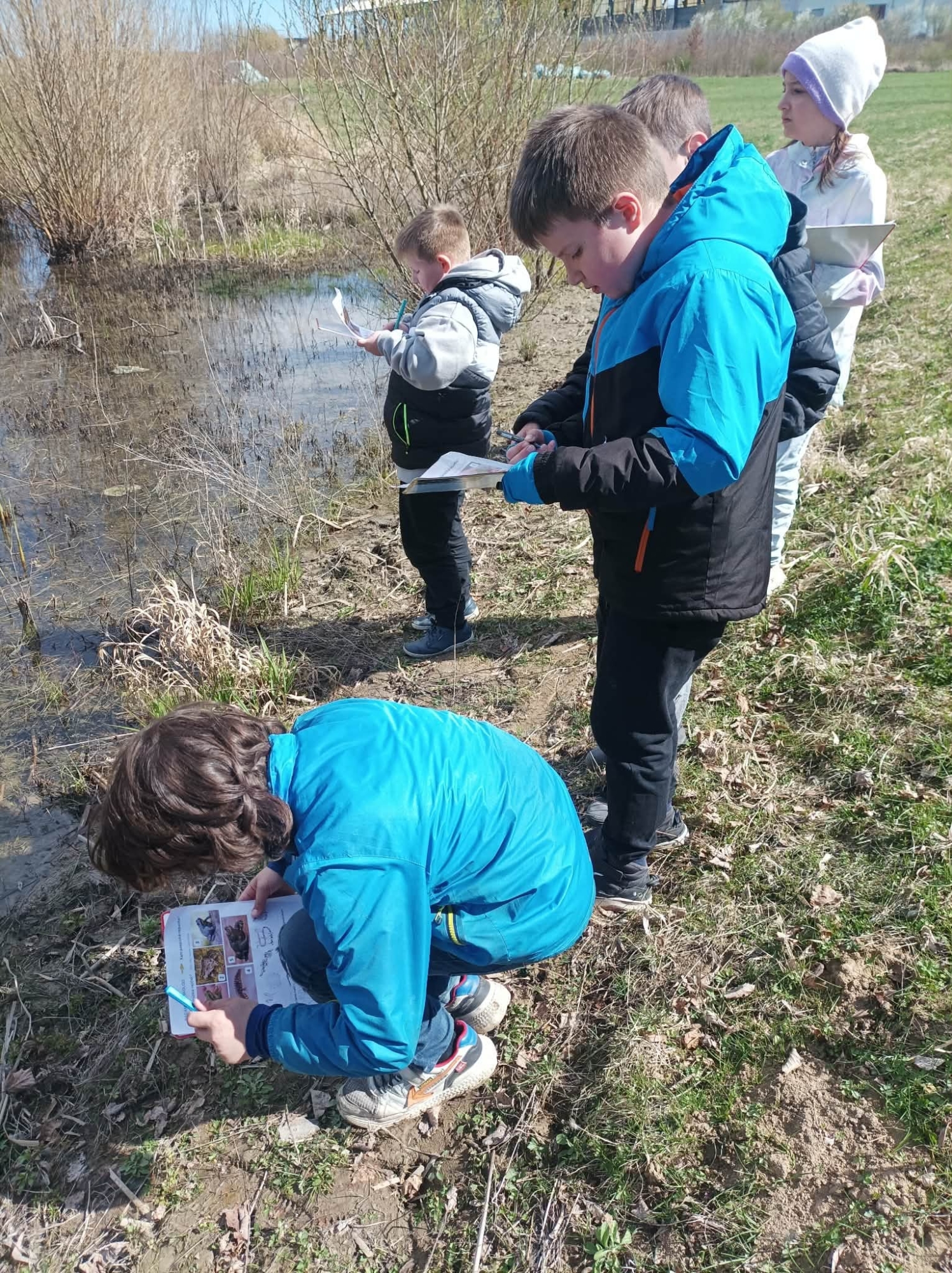V rámci badatelské výuky se žáci 3. třídy vydali ven k vodě, kde se proměnili v malé přírodovědce. Jejich cílem bylo pozorovat život obojživelníků, především žab.