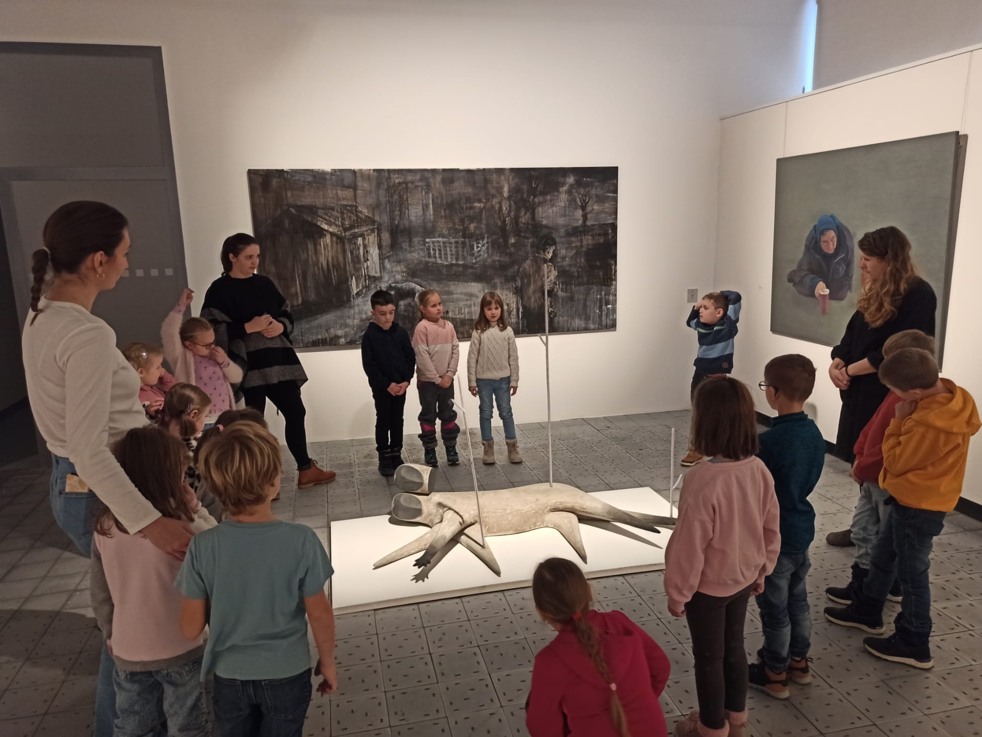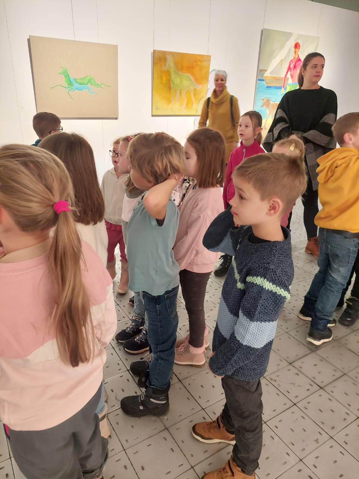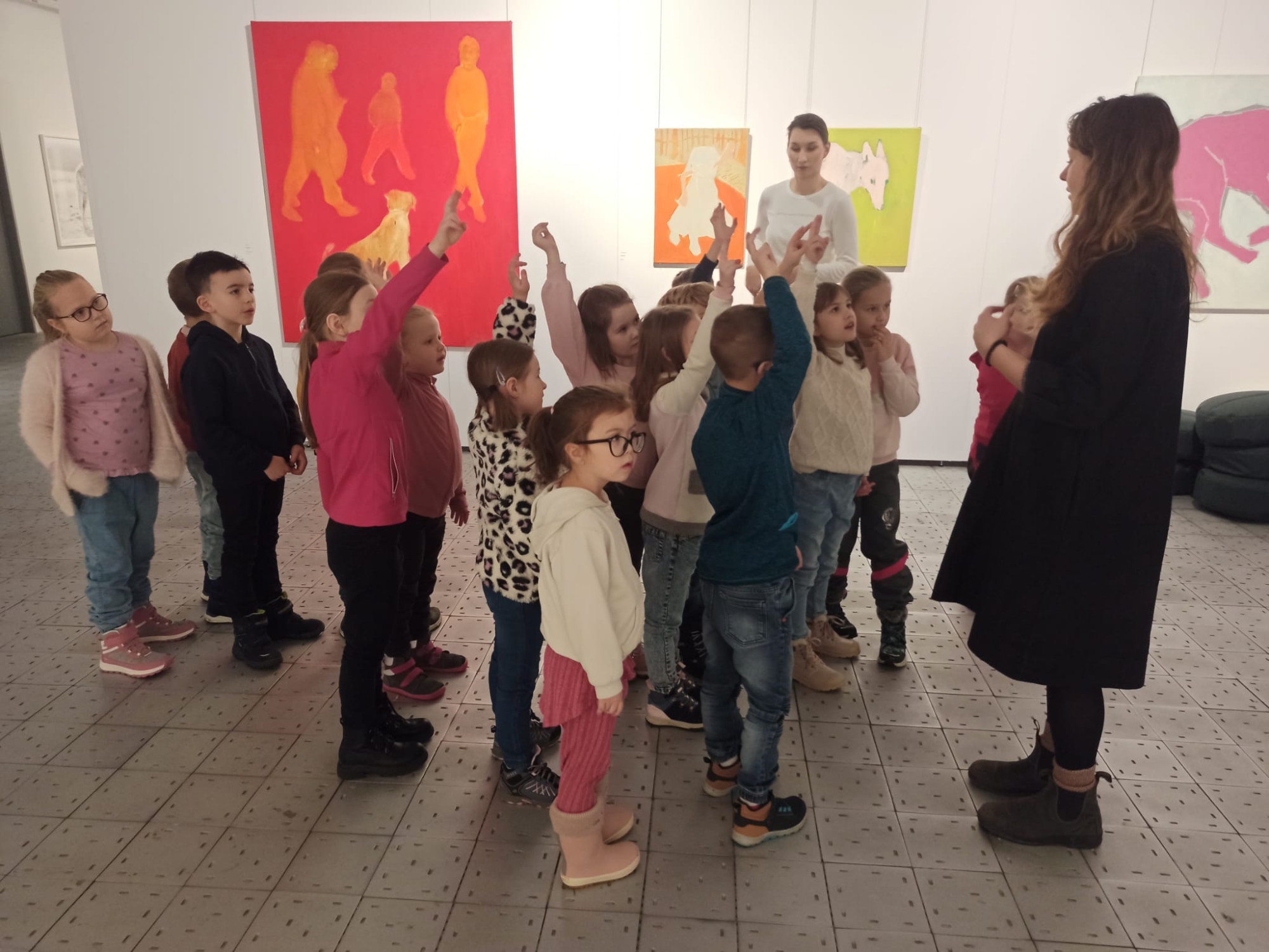 V úterý 25.11. se podívali naši prvňáčci do Krajské galerie výtvarného umění ve Zlíně. Zavítali na výstavu pojmenovanou Němá tvář, která je zaměřena na vyjádření vztahu člověk a pes. Pes jako společník, pracant, ale i pouhopouhá věc. V rámci programu, který jsme s dětmi v galerii absolvovali, si žáci mohli sami vyzkoušet několik technik, jak může takové dílo vznikat. Zda se jim to dařilo můžete posoudit z fotografií…