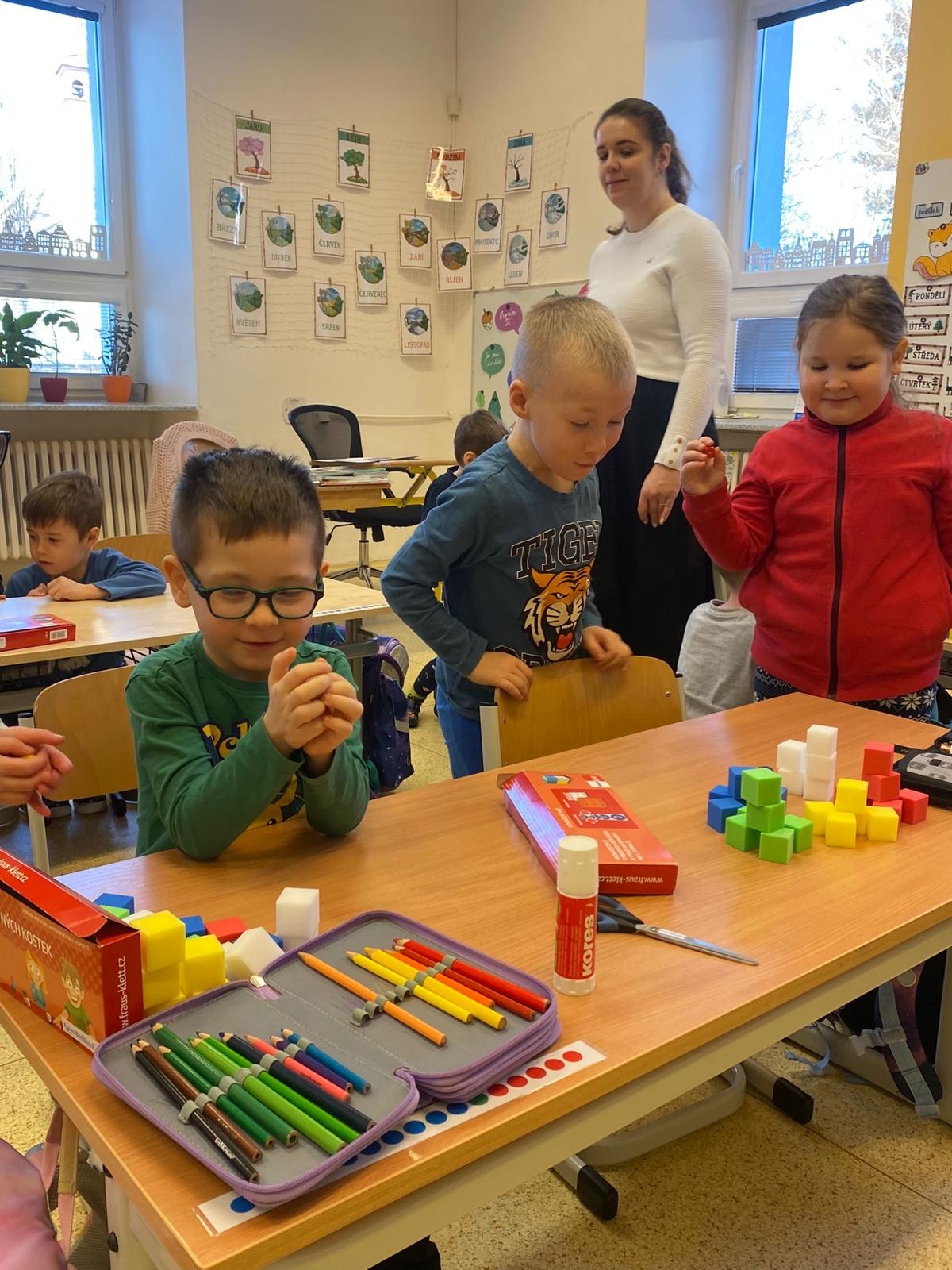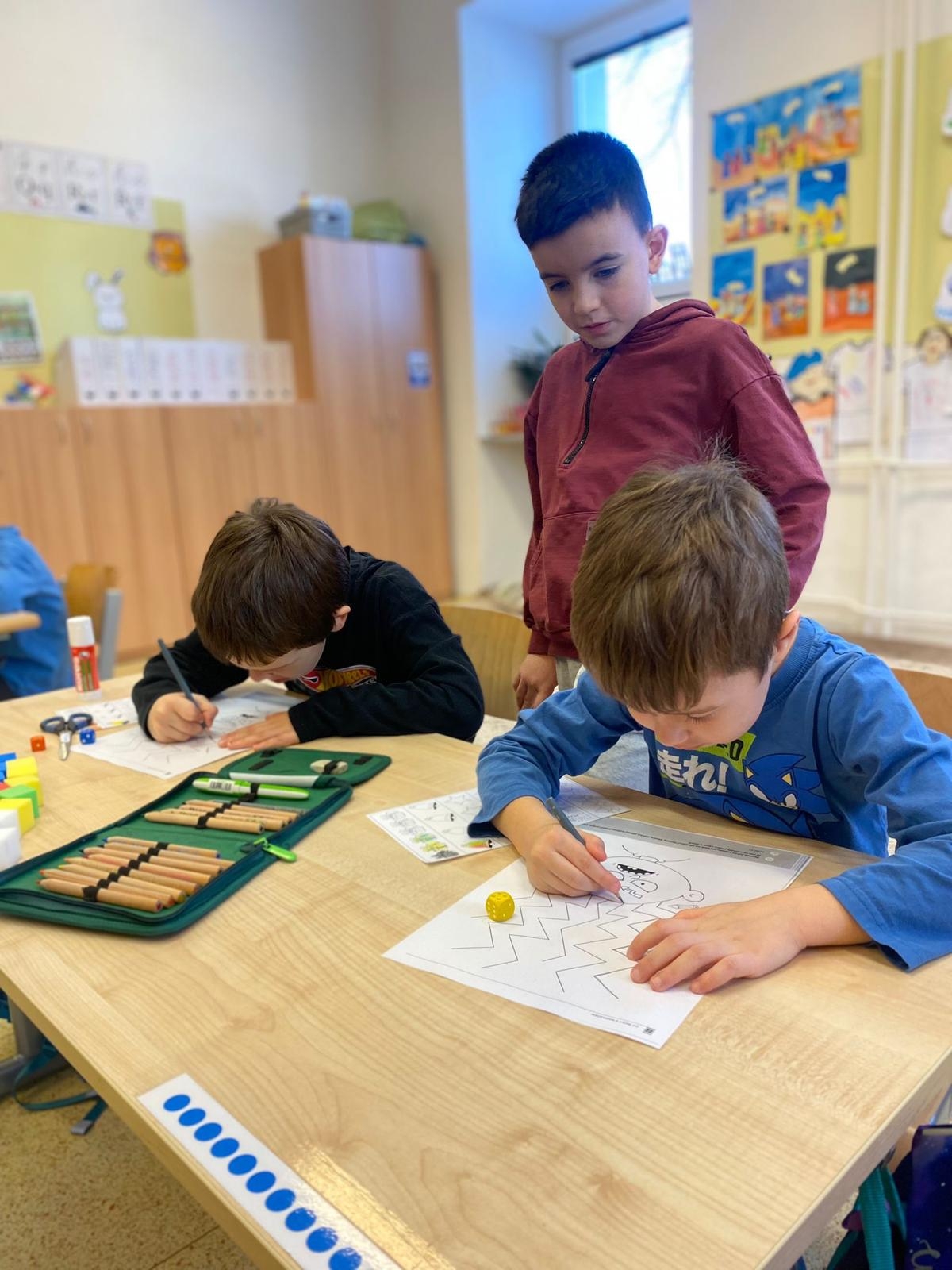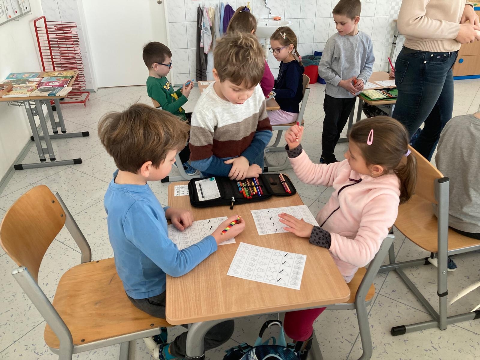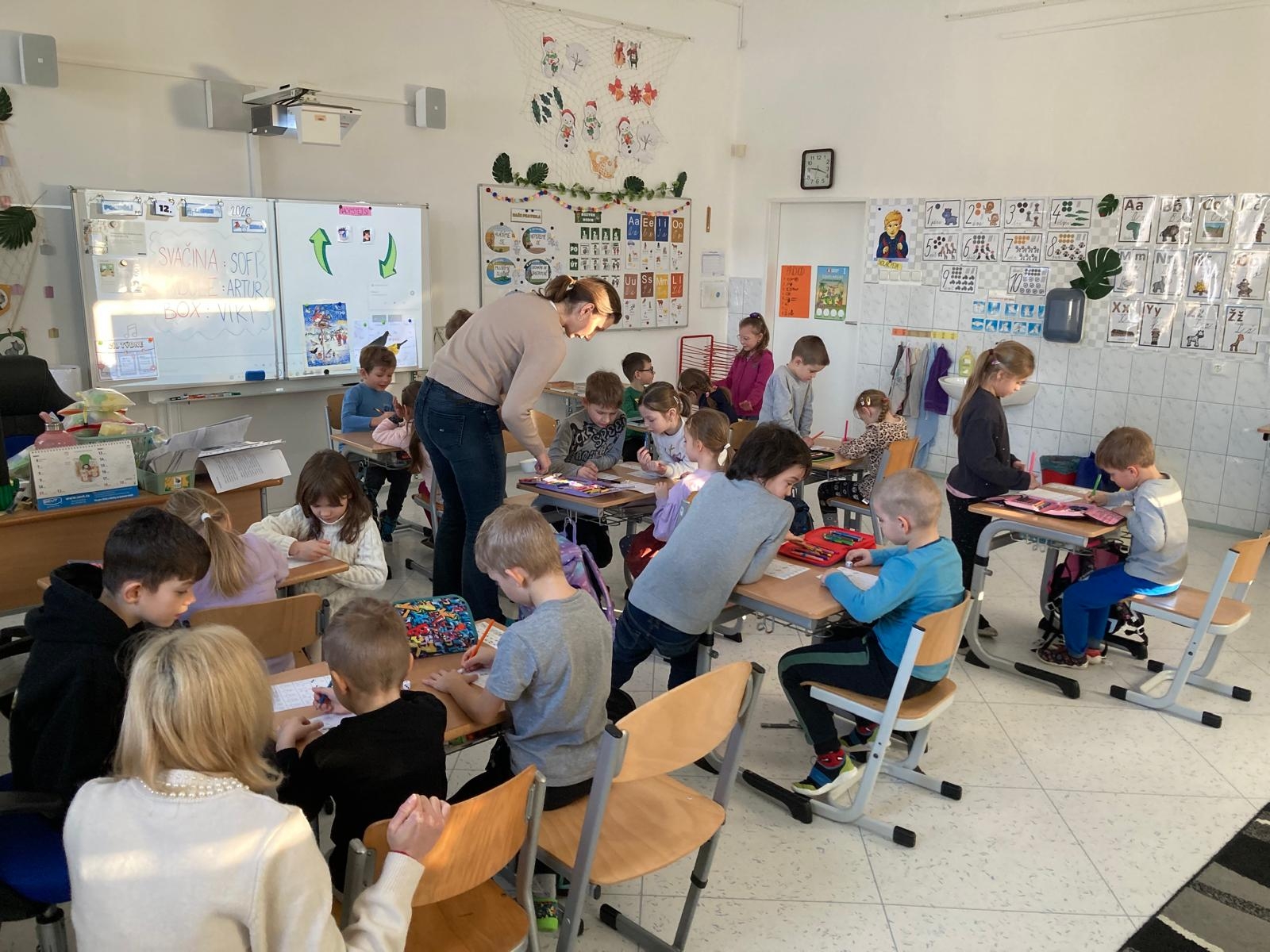 Dnes zavítali do 1. tříd na další návštěvu předškoláci z naší mateřské školy. Měli možnost se blíže seznámit se školním prostředím i s tím, co je od září čeká. Prvňáčci jim ukázali, jak probíhá vyučování, a společně si vyzkoušeli plnění jednoduchých úkolů v příjemné a přátelské atmosféře.