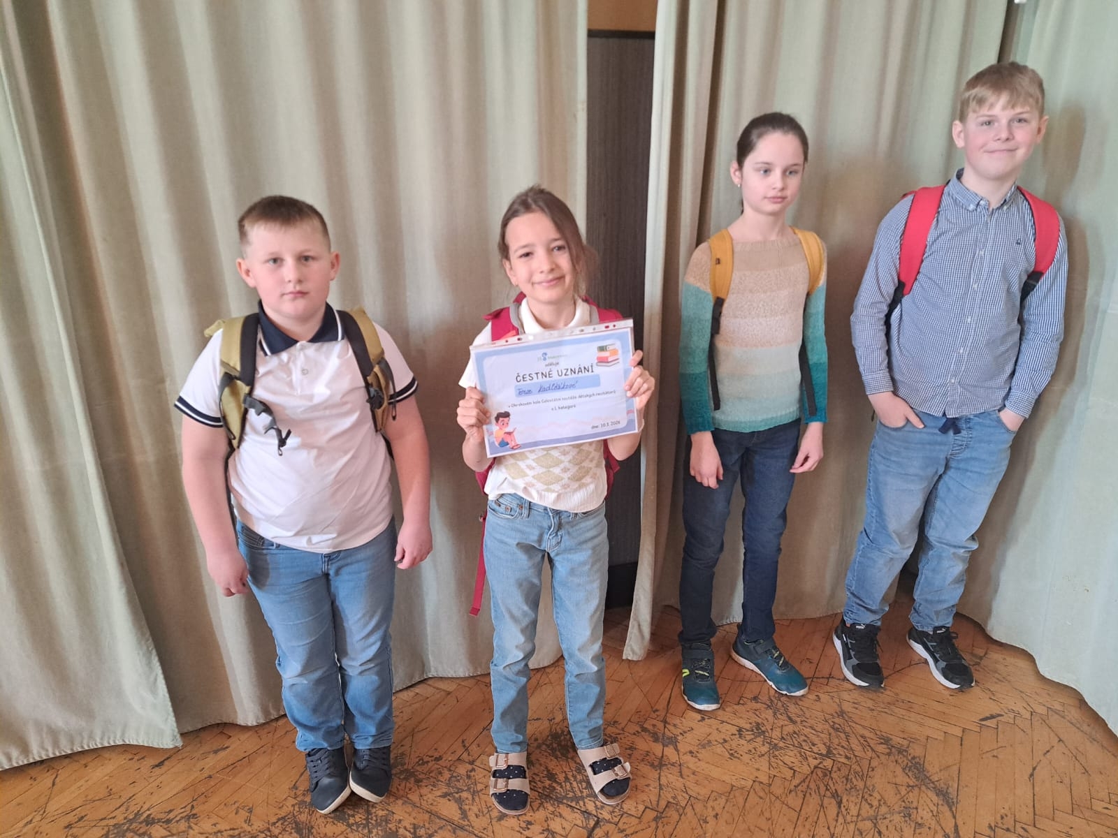 Naši šikovní recitátoři v úterý vyrazili reprezentovat školu do okrskového kola recitační soutěže na 11. ZŠ – a zvládli to s velkou parádou.