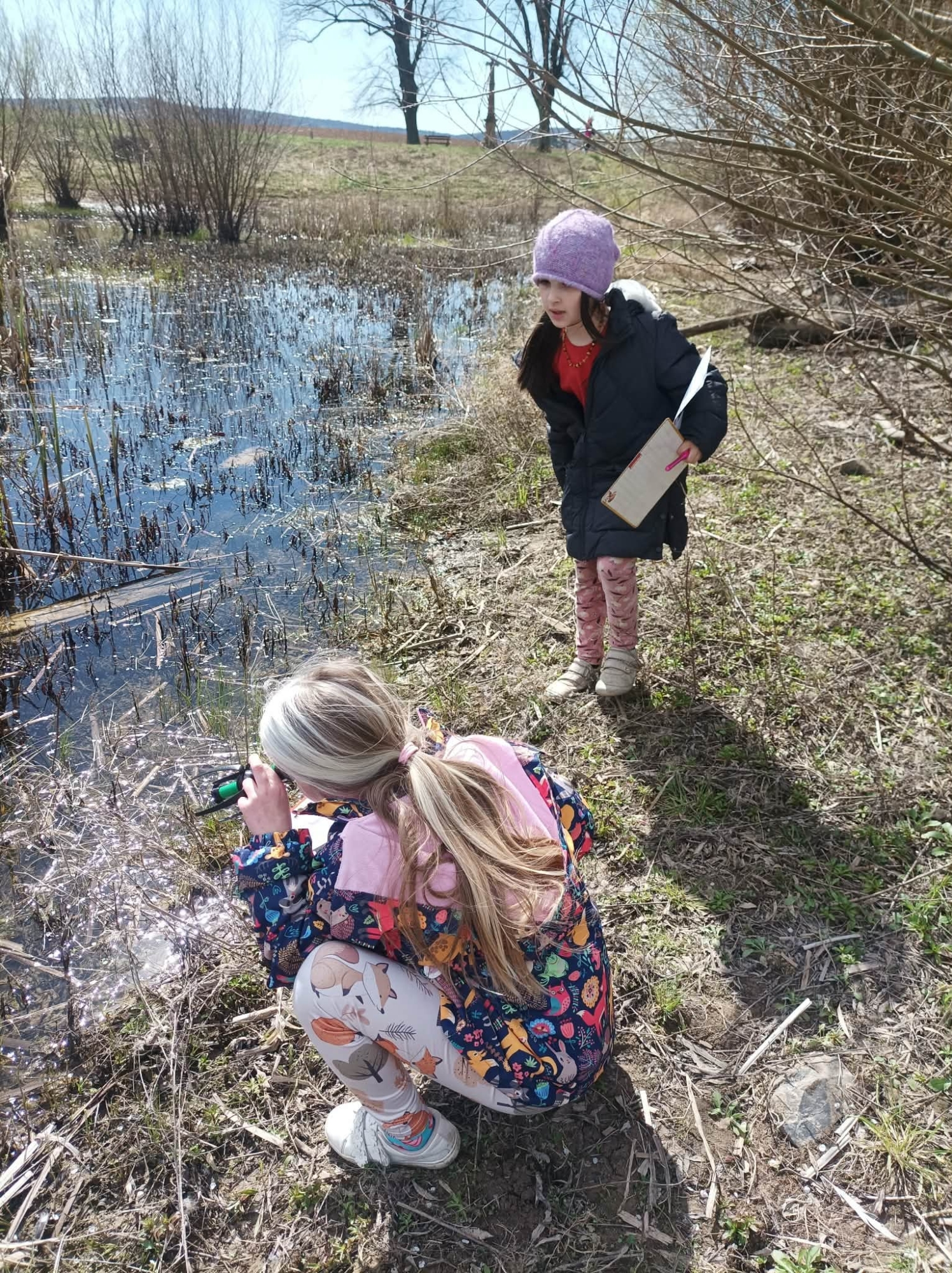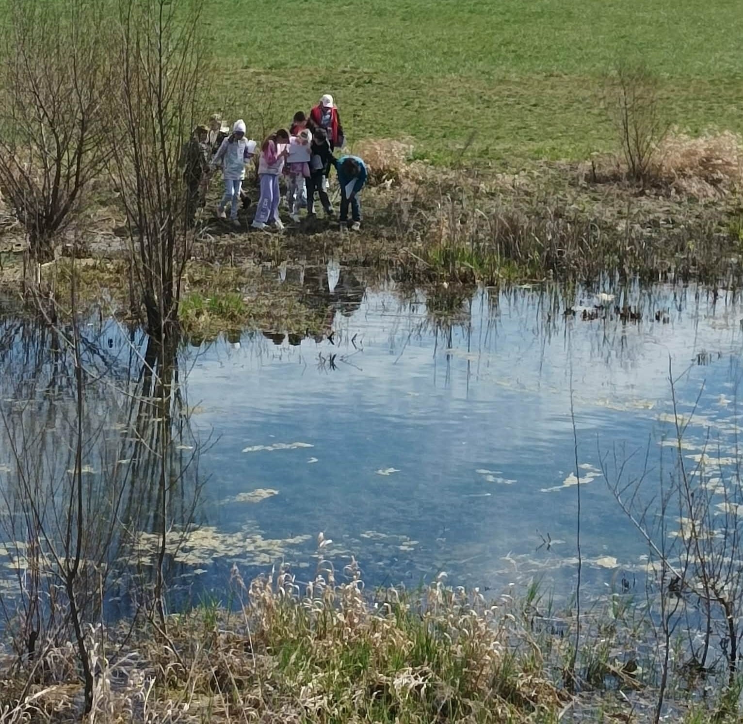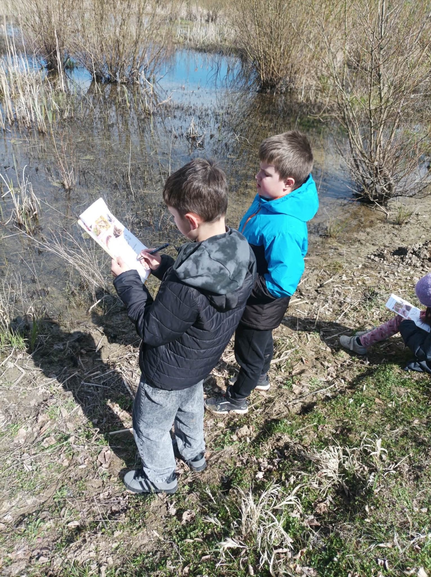 Dopoledne venku bylo plné objevování, pozorování, sdílení nápadů a naslouchání typickému žabímu kvákání. Třeťáci pracovali jako skuteční badatelé, kladli otázky, hledali odpovědi a učili se přímo v terénu. Měli velké štěstí. Objevili i snůšky vajíček, což byl pro všechny velký zážitek.