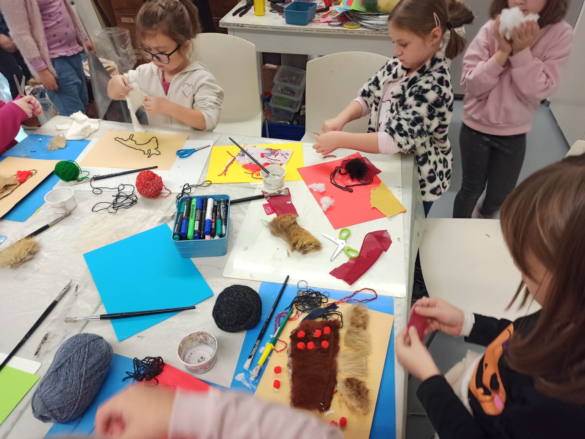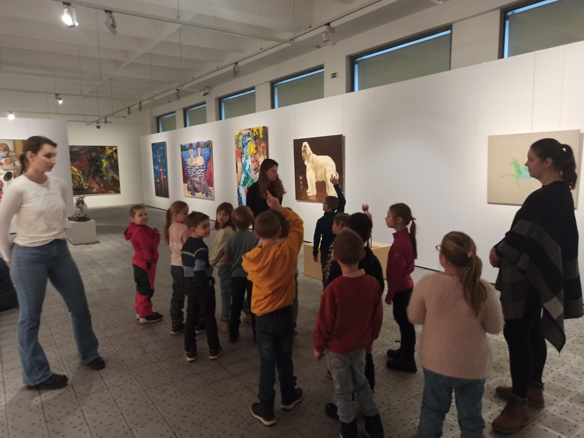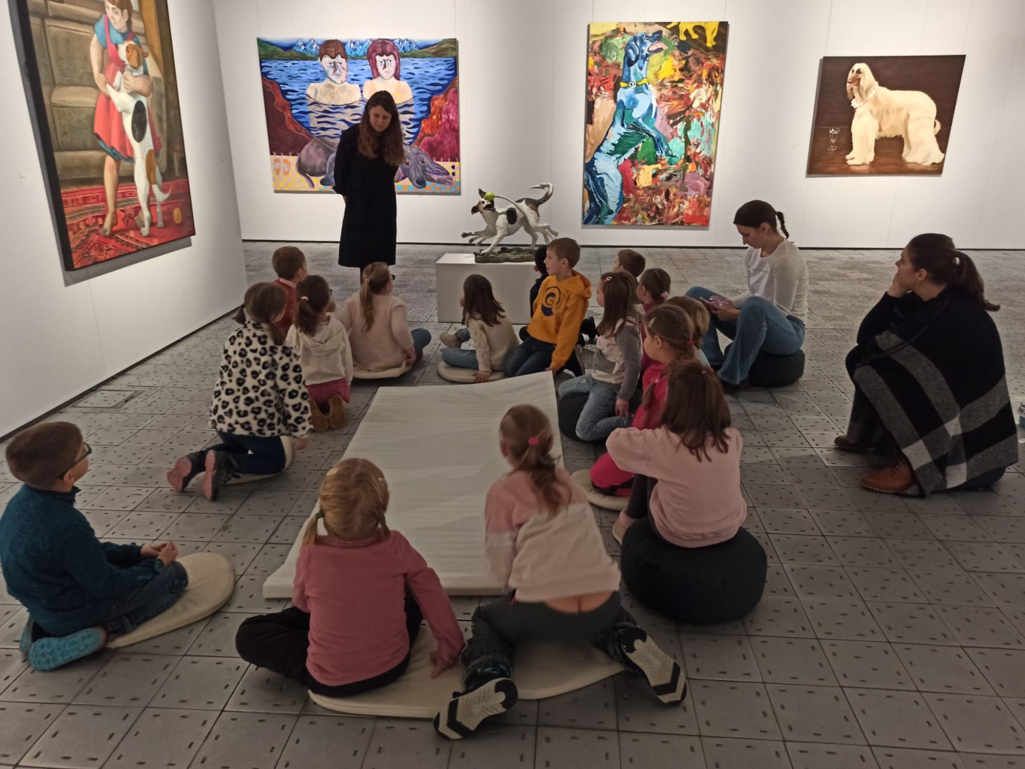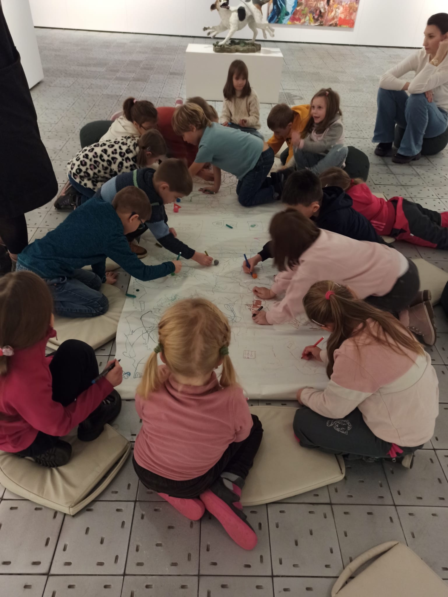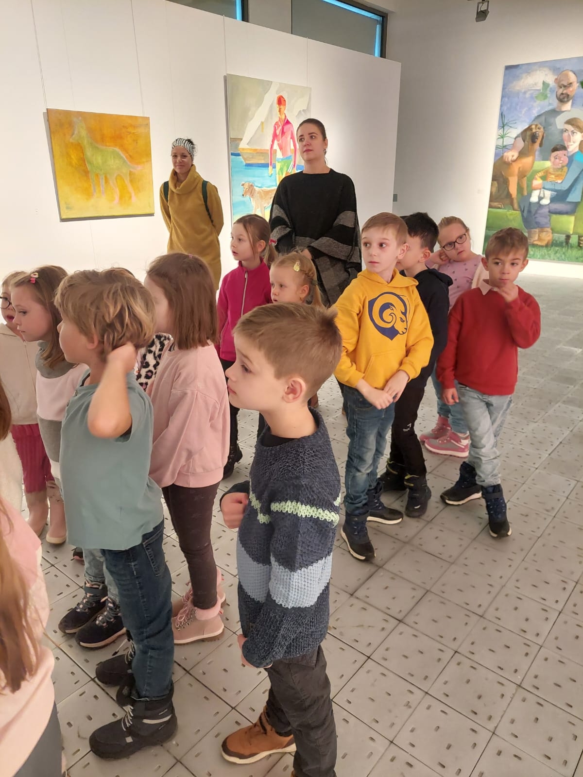 V úterý 25.11. se podívali naši prvňáčci do Krajské galerie výtvarného umění ve Zlíně. Zavítali na výstavu pojmenovanou Němá tvář, která je zaměřena na vyjádření vztahu člověk a pes. Pes jako společník, pracant, ale i pouhopouhá věc. V rámci programu, který jsme s dětmi v galerii absolvovali, si žáci mohli sami vyzkoušet několik technik, jak může takové dílo vznikat. Zda se jim to dařilo můžete posoudit z fotografií…